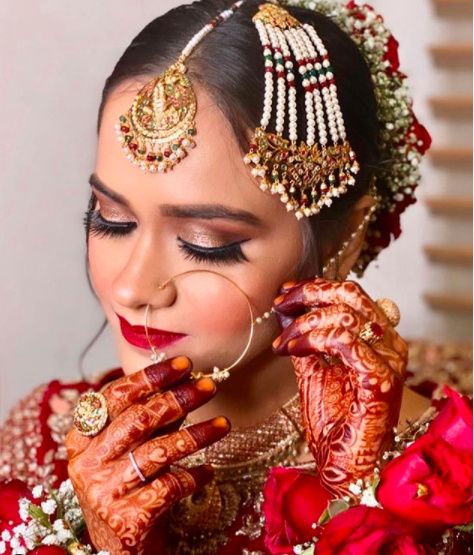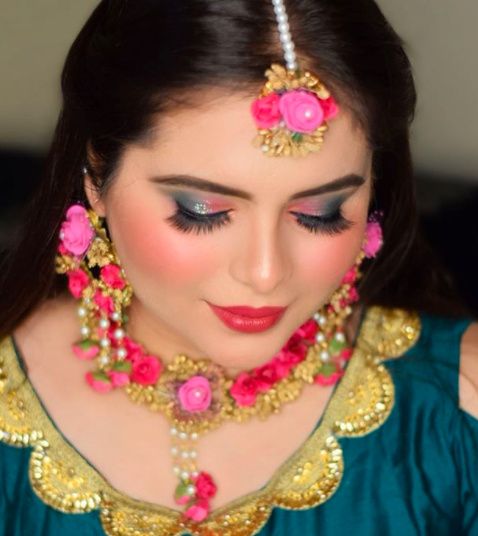 Floral adornments, Dewy skin, peachy makeup, the perfect look for your mehndi function! Agree with me? Who all will try it out?