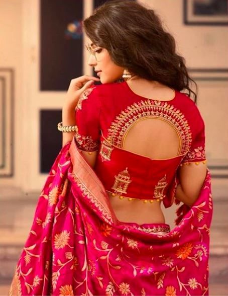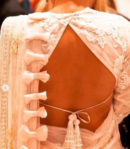 Loving this saree blouse! How attractive this looks with the bow design on the side and tasselled Dori😍