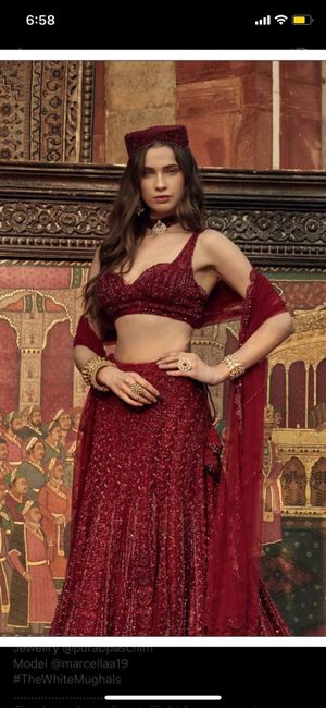 Hi everyone! This is my sangeet lehenga and would like some tips on how to style it, hairstyle, jewellery etc. would going with chandelier earrings and a ring work since the lehenga is so ornate in itself? What about the hair?