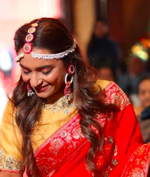 Heard of half-and-half matha Patti? Who not wear it on your sangeet like this bride? She is looking so pretty... , yes or no?