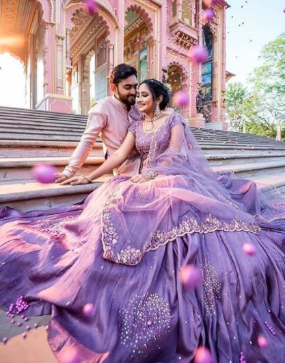 This bride looks ravishing in this designer purple lehenga! Look at the way his man is staring at her!!! Uffff so cute! So ladies, ditch reds and pinks and go for offbeat colours.