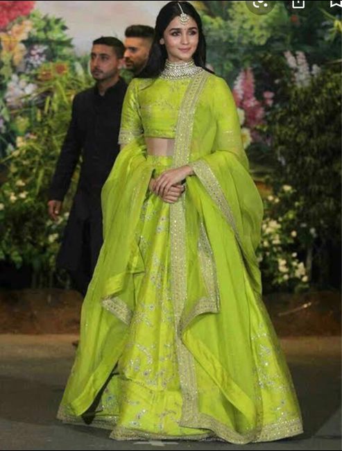 I always think of Alia Bhatt in that parrot green colour lehenga of hers! Can you all recall that look of her?😍